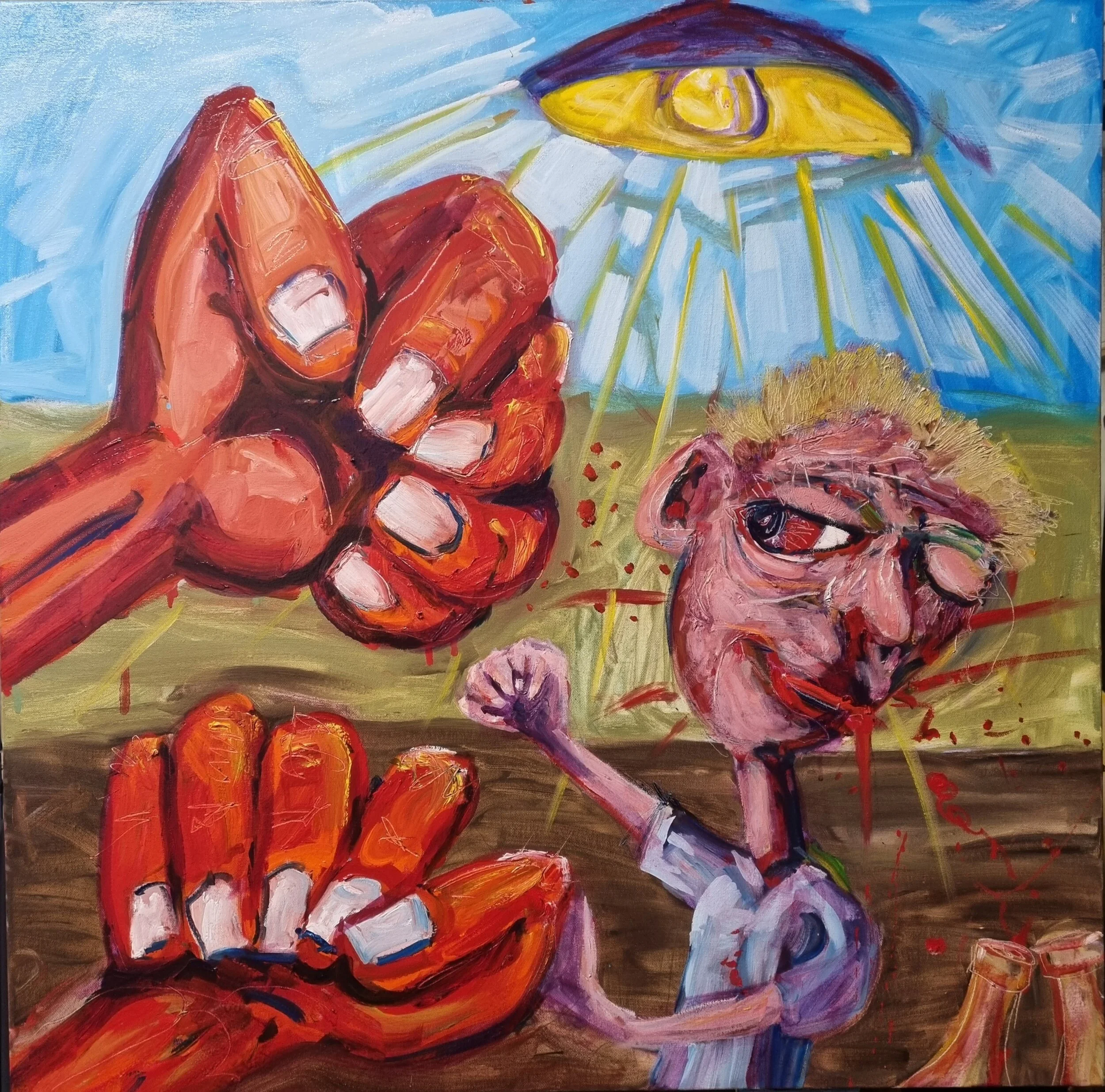 The Ghost of Pablo Says Hello. Oil on canvas 100cm x 100cm.