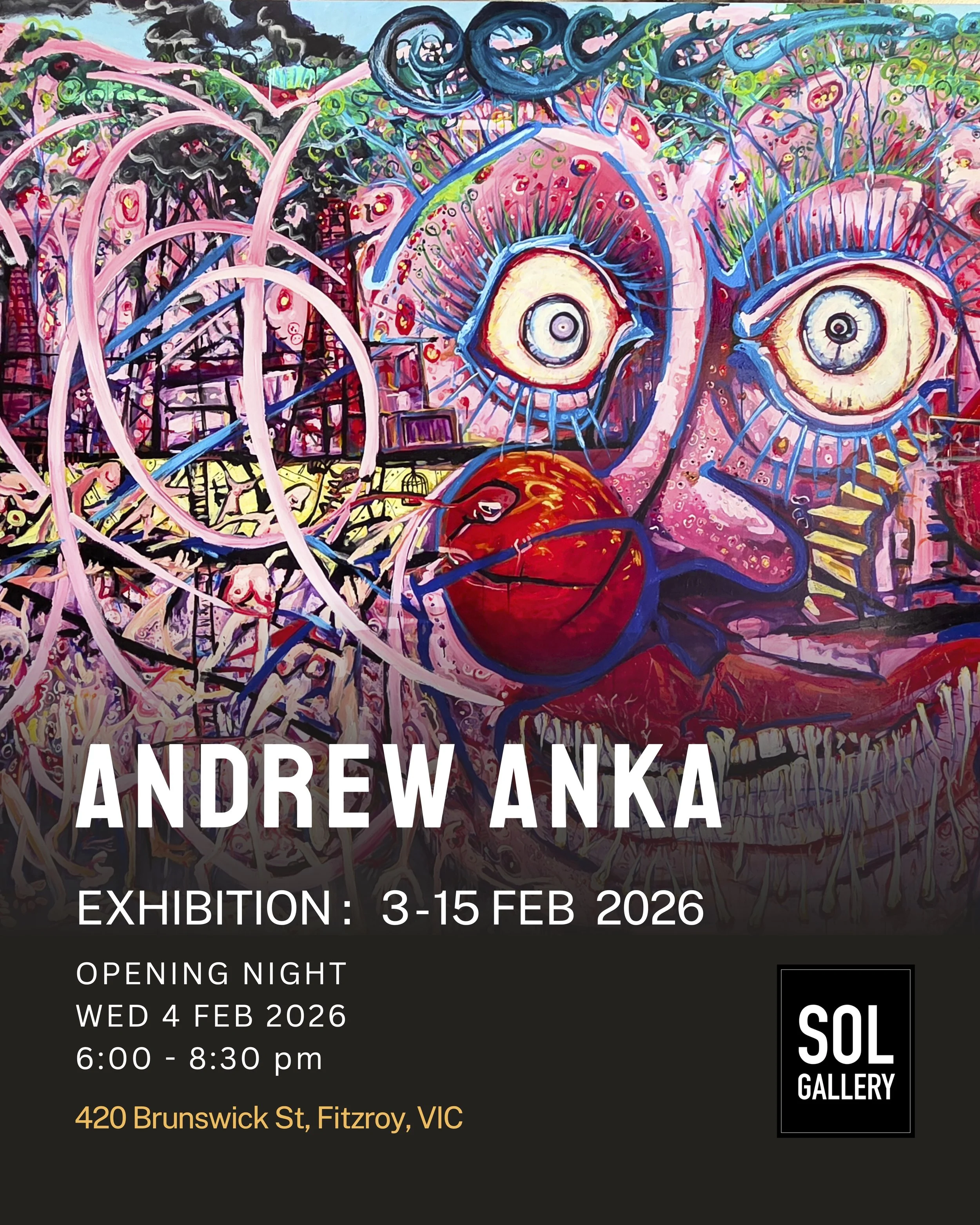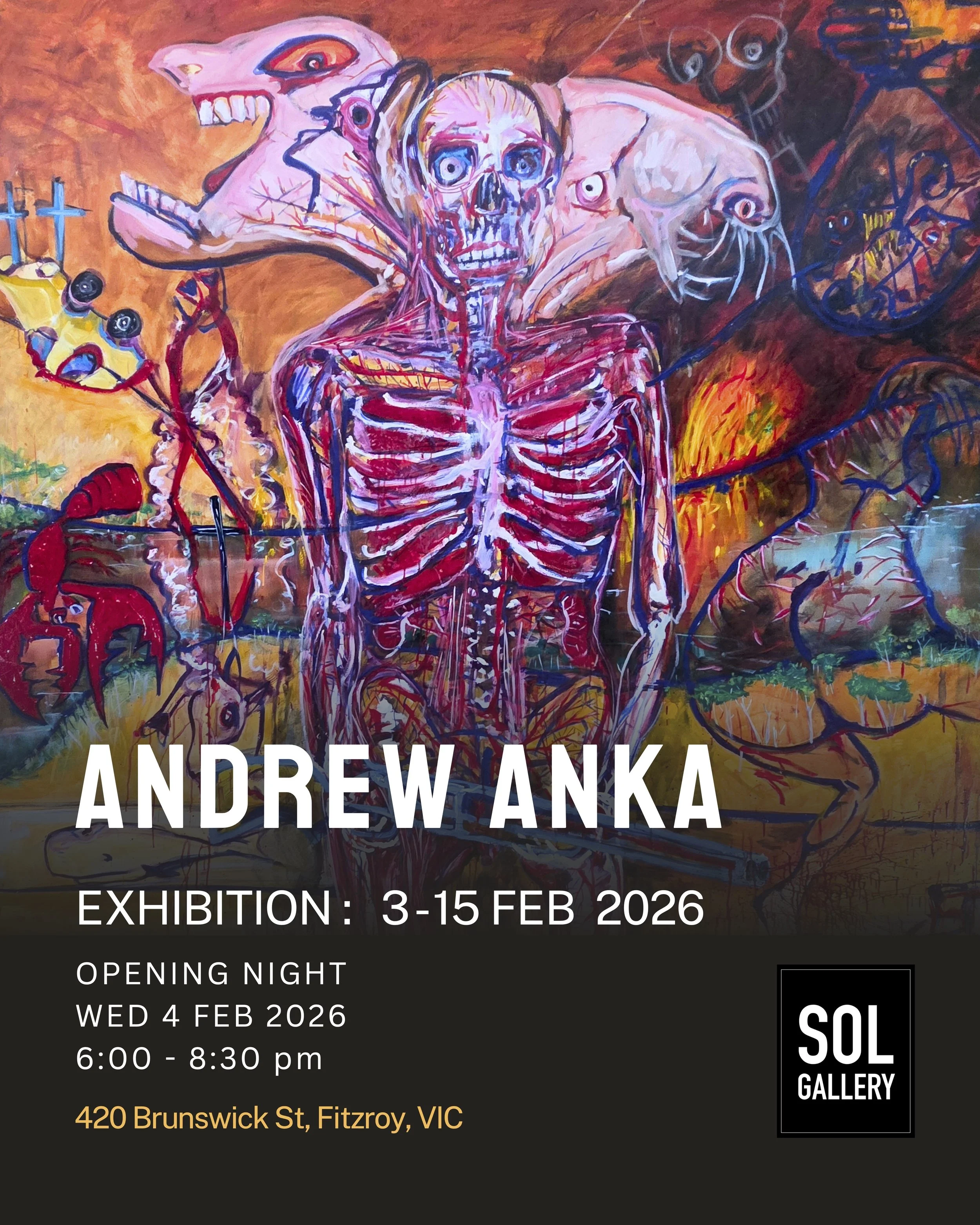 In September 2022 Andrew had his first solo exhibition in Melbourne at the Black Cat gallery (now SOL Gallery) in Fitzroy.